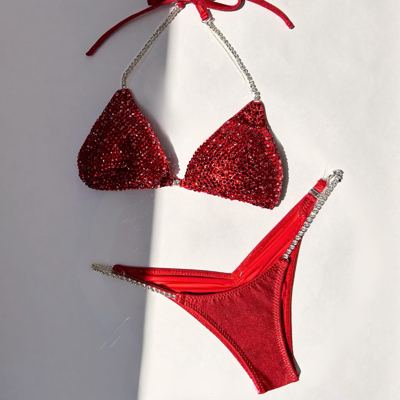 シャイニー生地をベースに、ハイクオリティのストーン(プレシオサストーン)を2色使い、ビキニ全面に敷き詰めるコネクタビキニです。※コネクタは画像のものになります。変更したい場合はフルオーダーでご注文ください。